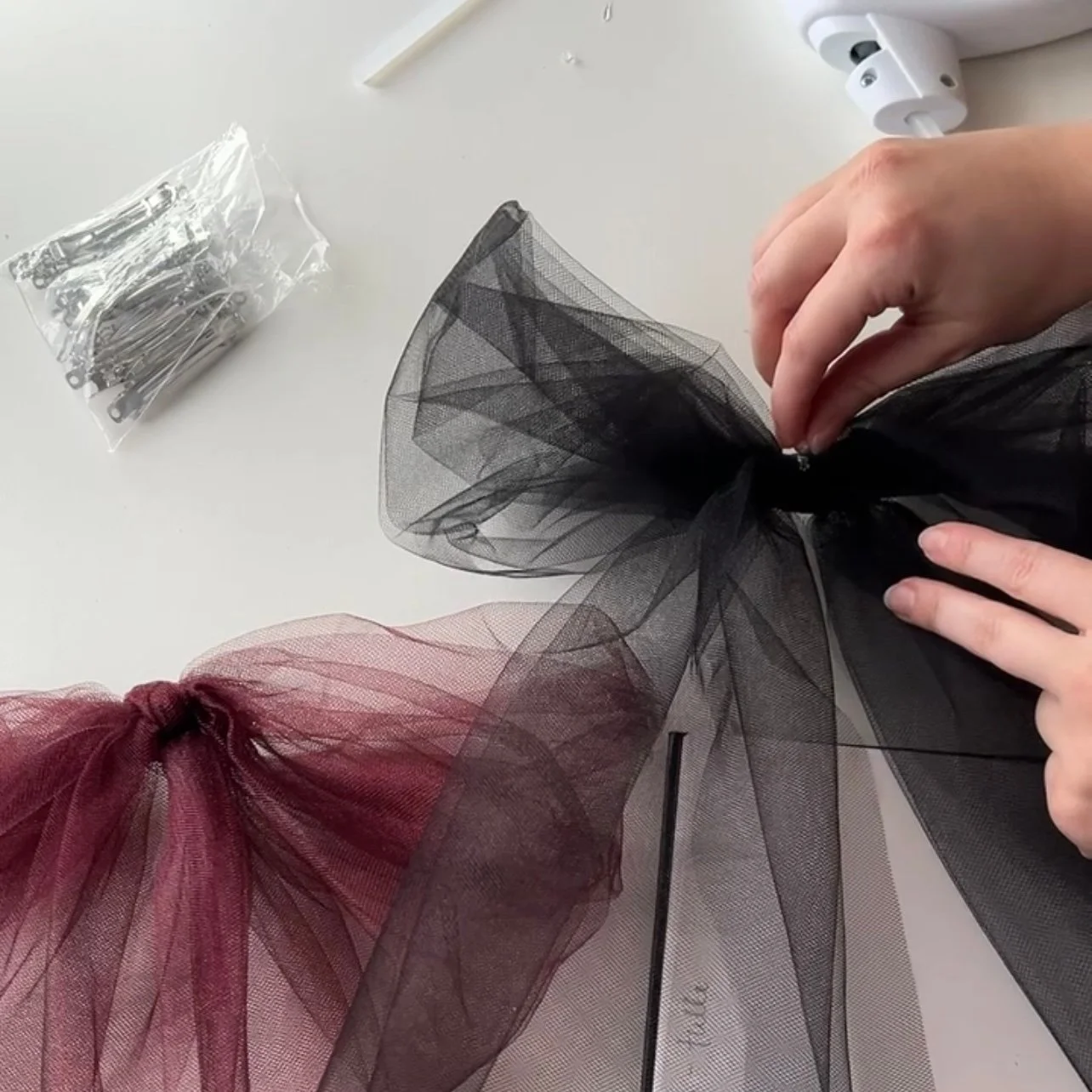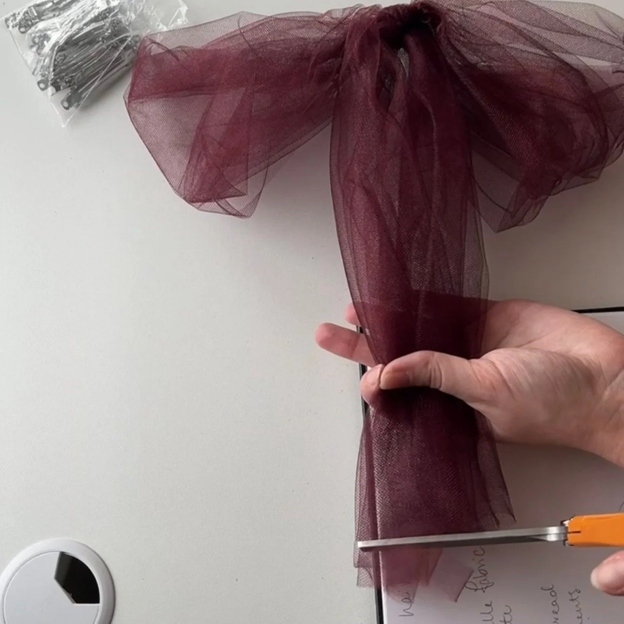 1/2 yard of tulle fabric (you can use 1/4 yard for a thinner bow, or up to a full yard for a denser bow)