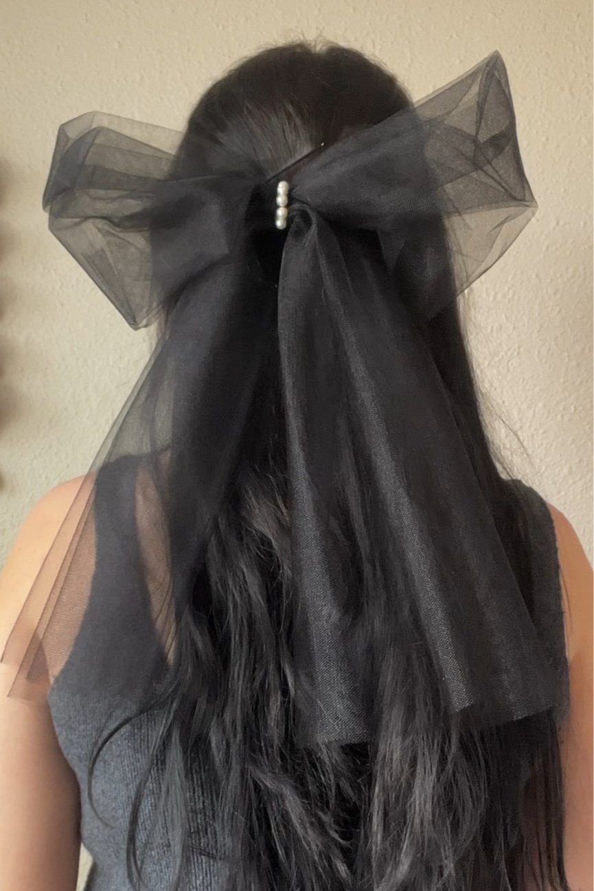 Fluff the bow some more so it holds the shape you want. Trim the tulle so that the length is even.