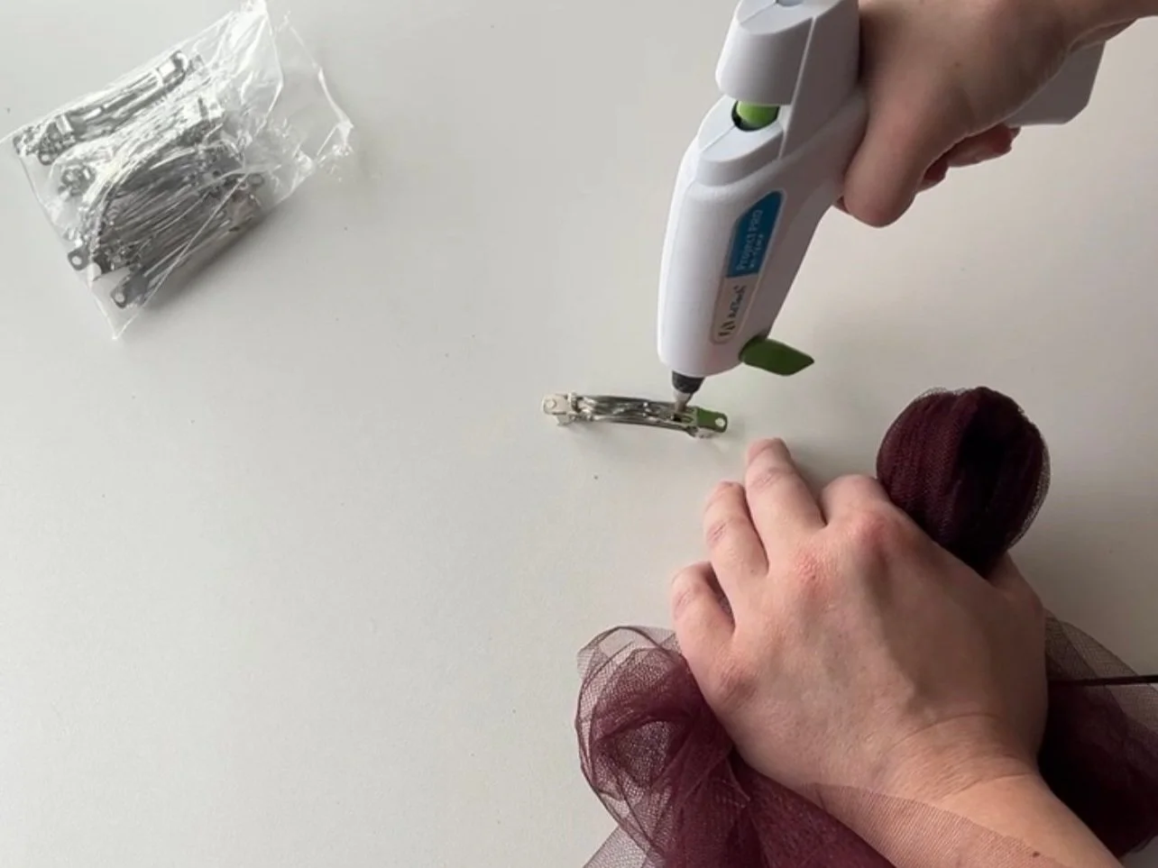 Apply the glue to the barrette.