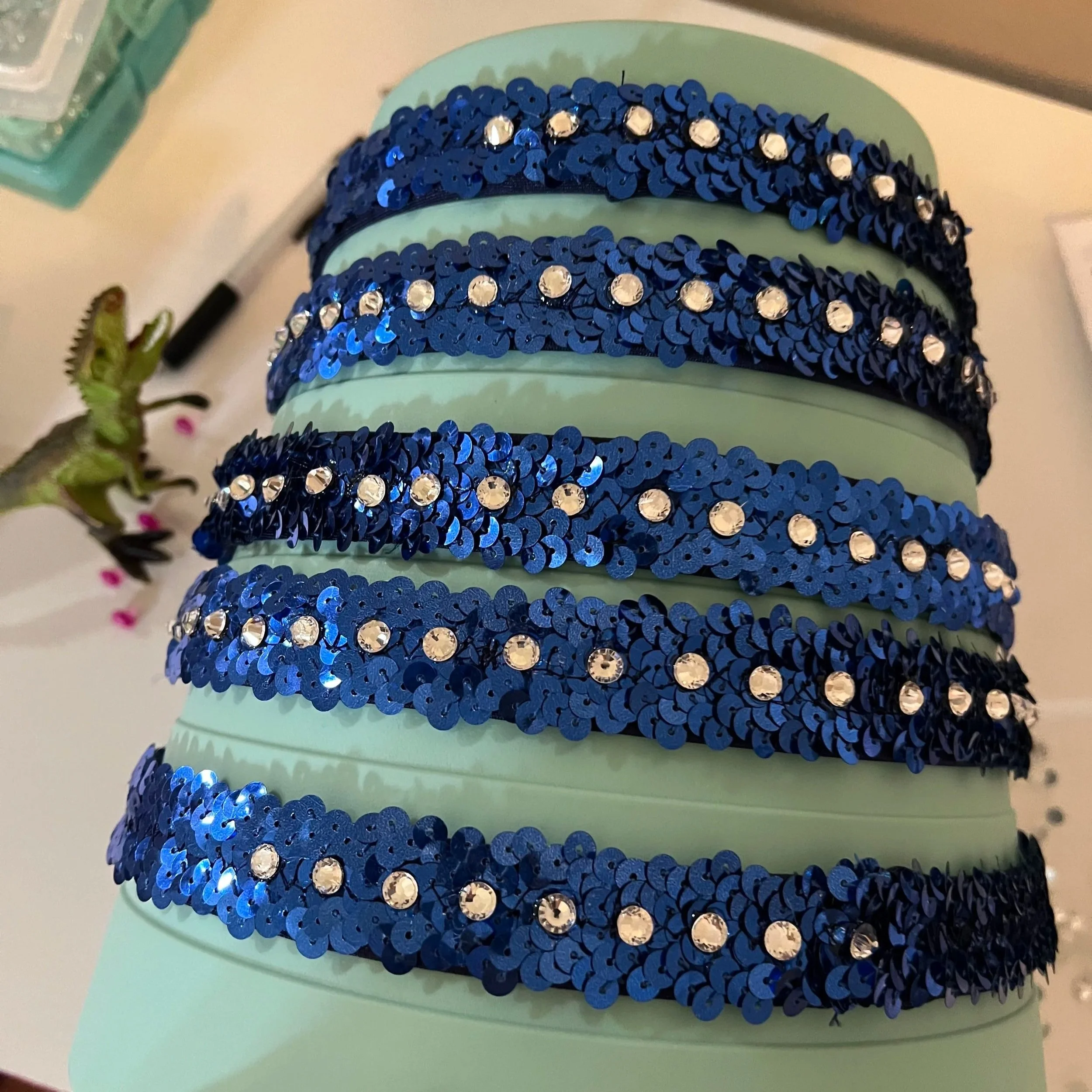 1 yard (or meter) of 3 row/ 3 cm width of stretchy sequin trim